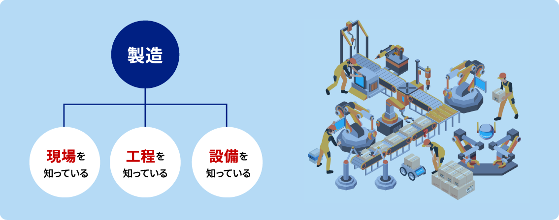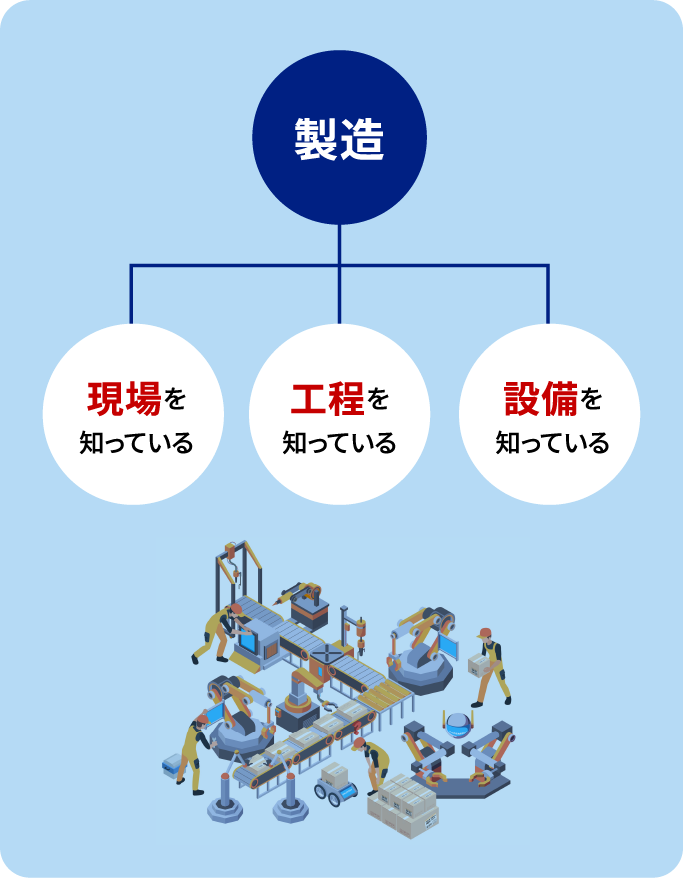 現場の人たちがどのような環境で、どのような設備で、どのような流れで業務を行っているのか、現場確認を行ってきた当社だからこそ分かるノウハウを活かしたシステム開発、お客様へのご提案をしております。