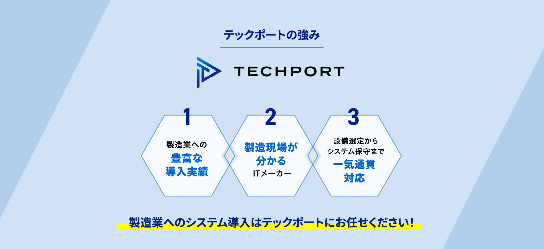 テックポートは、創業当時から自動車製造業を中心に様々な工場訪問の経験を重ねシステム開発、システム導入支援を行ってきました。