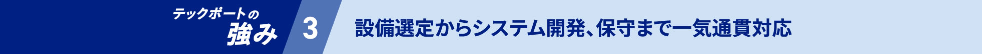 プロジェクトの立ち上げ段階からアサインし、現場調査や設備選定のサポート、システム導入後のシステム保守まで、システム導入にかかわる業務について幅広く、一気通貫でサポートさせて頂きます。